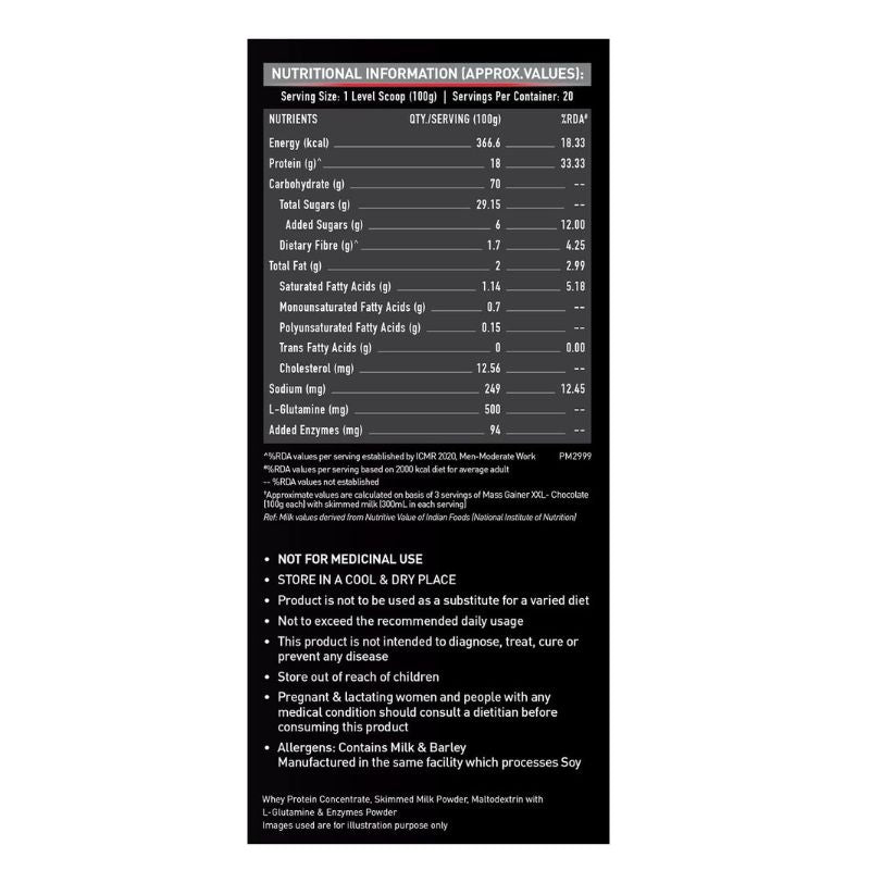 HIGH CALORIE GAINING FORMULA: MuscleBlaze Mass Gainer XXL is a potent supplement that when used in conjunction with training helps gym-goers bulk up. It is a high calorie-gaining formula which offers a sizable 1361 kcal and 76.5 g protein from three servings with milk