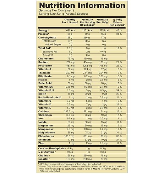 50 grams of protein per serving and over 250 grams of Carbohydrates per serving